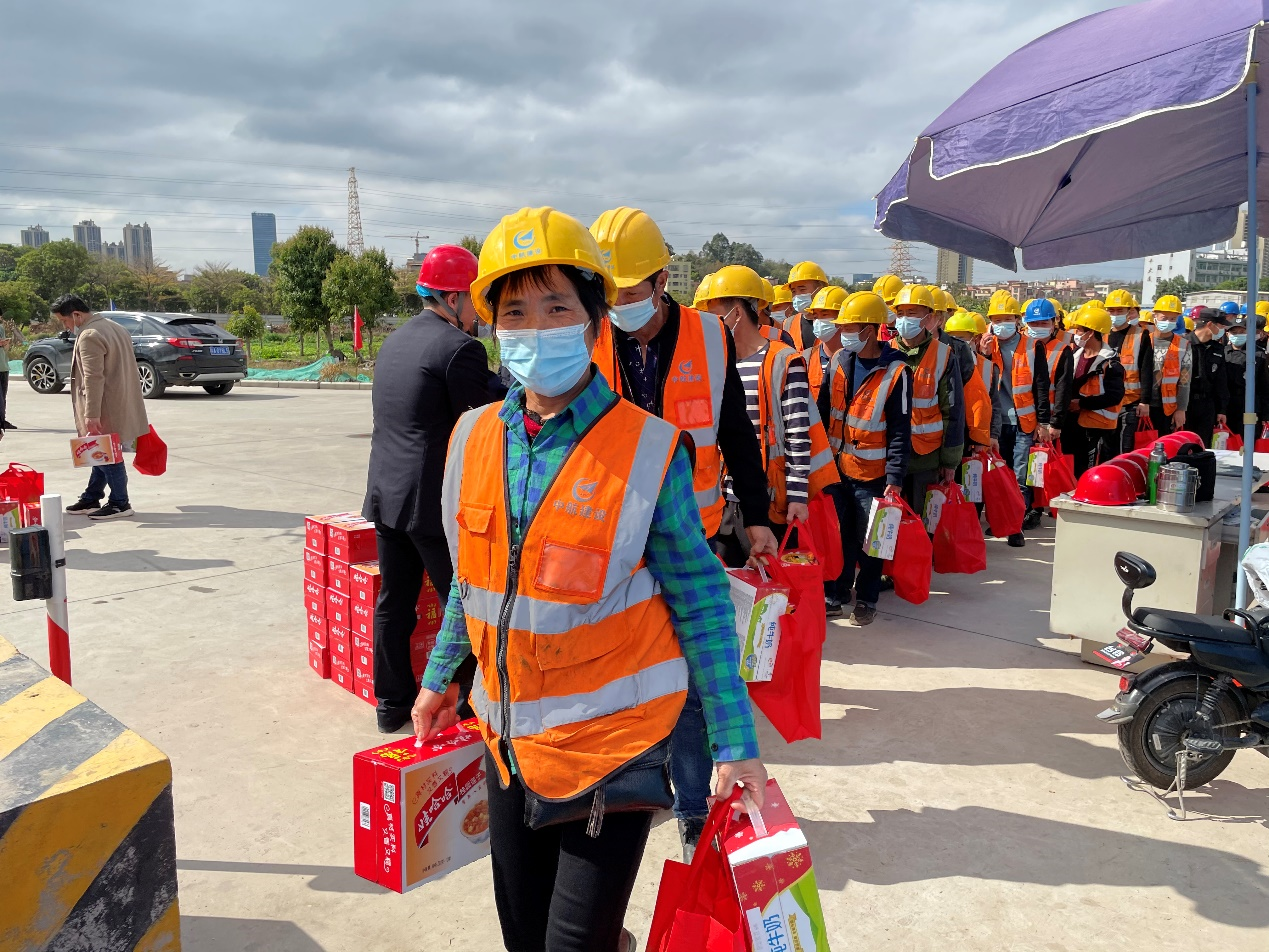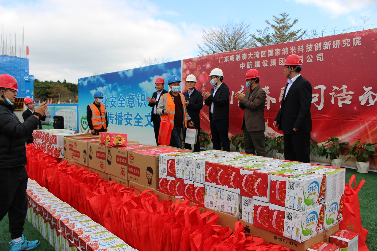 大年三十闹新春,生产一线迎新年。为响应地方政府“留穗过年”的号召,2021年2月11日,华体会官方版网站登录入口南方工程有限公司联合广州市黄埔区鱼珠街道办事处、广州纳米产业投资有限公司、广州珠江工程建设监理有限公司,组织开展“2021新春慰问活动”。