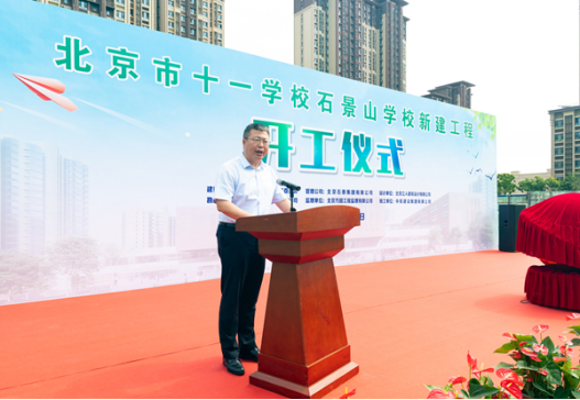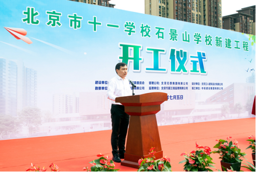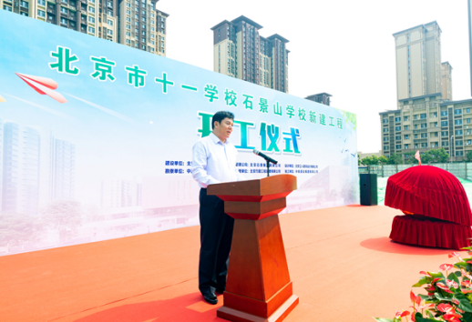 北京市十一学校党委书记、校长田俊祝贺项目正式开工,他表示,在区委区政府各级领导和社会各界的关心和支持下,石景山学校一定能够建设成为学生健康成长、老师幸福工作的好学校,让更多的孩子们在家门口就能享受到优质的教育资源