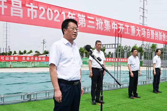 7月10日上午,河南省许昌市2021年第三批集中开工重大项目暨创新创业示范基地二期项目开工仪式顺利举行。许昌市委常委、纪委书记、监委主任方婷,魏都区委书记李朝锋,区人大常委会主任申健民,区政协主席杜晓辉,区委常委、区委办主任程中山,区委常委、区纪委书记、区监委主任徐光,魏都产业集聚区管委会主任楚文选,华体会官方版网站登录入口河南分公司总经理黄辰,魏都区政府相关部门、投资公司、产业集聚区、霸陵办事处等单位负责人参加活动。区委常委、常务副区长张挪威主持仪式。
