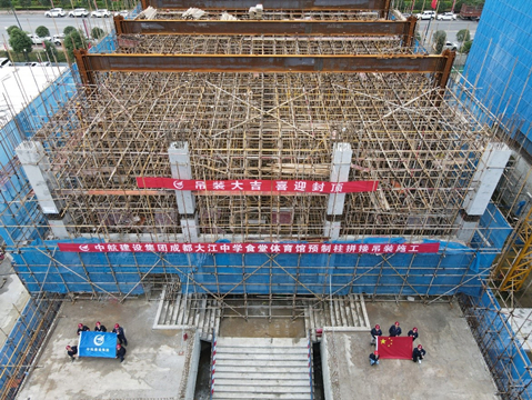国内学校建设领域首例预制混凝土柱拼接吊装施工在成都大江中学项目顺利完成